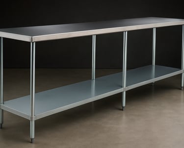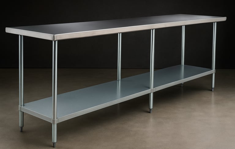A durable stainless steel work table with an under-shelf, ideal for food preparation and service areas. Its extended length and open design provide ample workspace and convenient storage, making it perfect for commercial kitchens and catering operations.