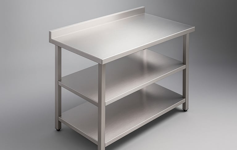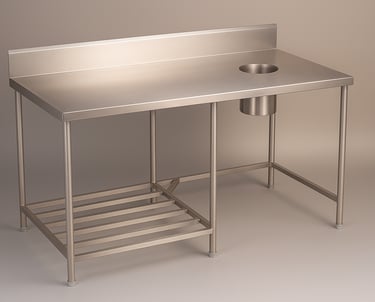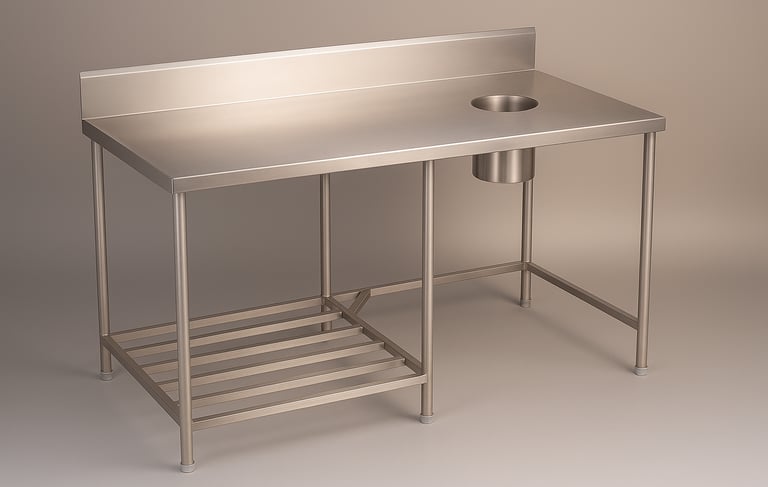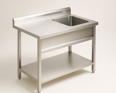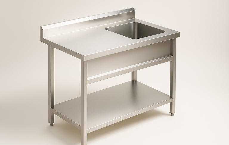 A versatile stainless steel work table integrated with a sink basin, ideal for washing and prepping tasks in commercial kitchens. The compact design ensures efficient use of space, while the durable construction supports hygiene and ease of maintenance.