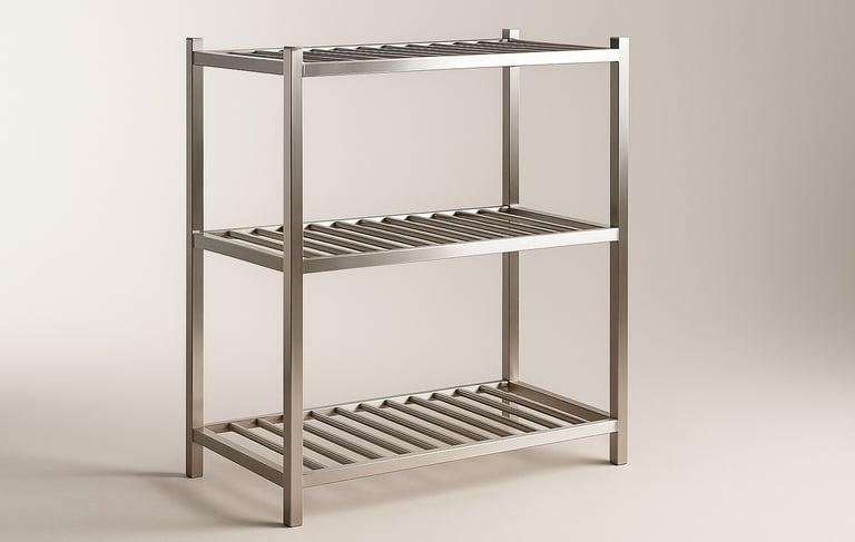 The Clean Dish Rack is a robust and hygienic storage solution for sanitized dishes and kitchenware. Constructed from high-quality stainless steel, it offers multiple fixed shelves for organized stacking. Ideal for commercial kitchens and dishwashing areas, this rack promotes proper air circulation and drainage to ensure dishes dry effectively and remain contamination-free.
