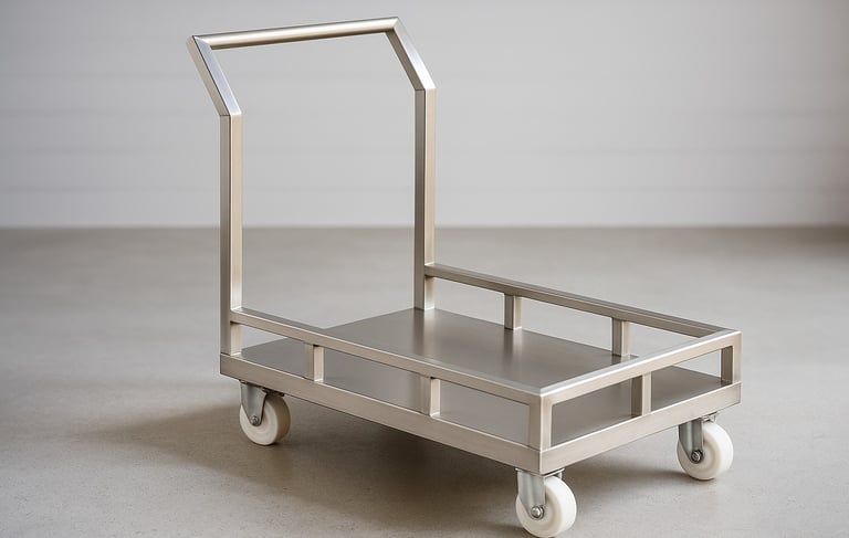A durable stainless steel platform trolley designed for transporting heavy goods efficiently in commercial kitchens, hotels, and industrial settings. Built with a strong flat base to hold large or bulky items, and equipped with heavy-duty caster wheels for smooth mobility. The ergonomic handle ensures easy grip and maneuverability, making it ideal for handling supplies or equipment with minimal effort.